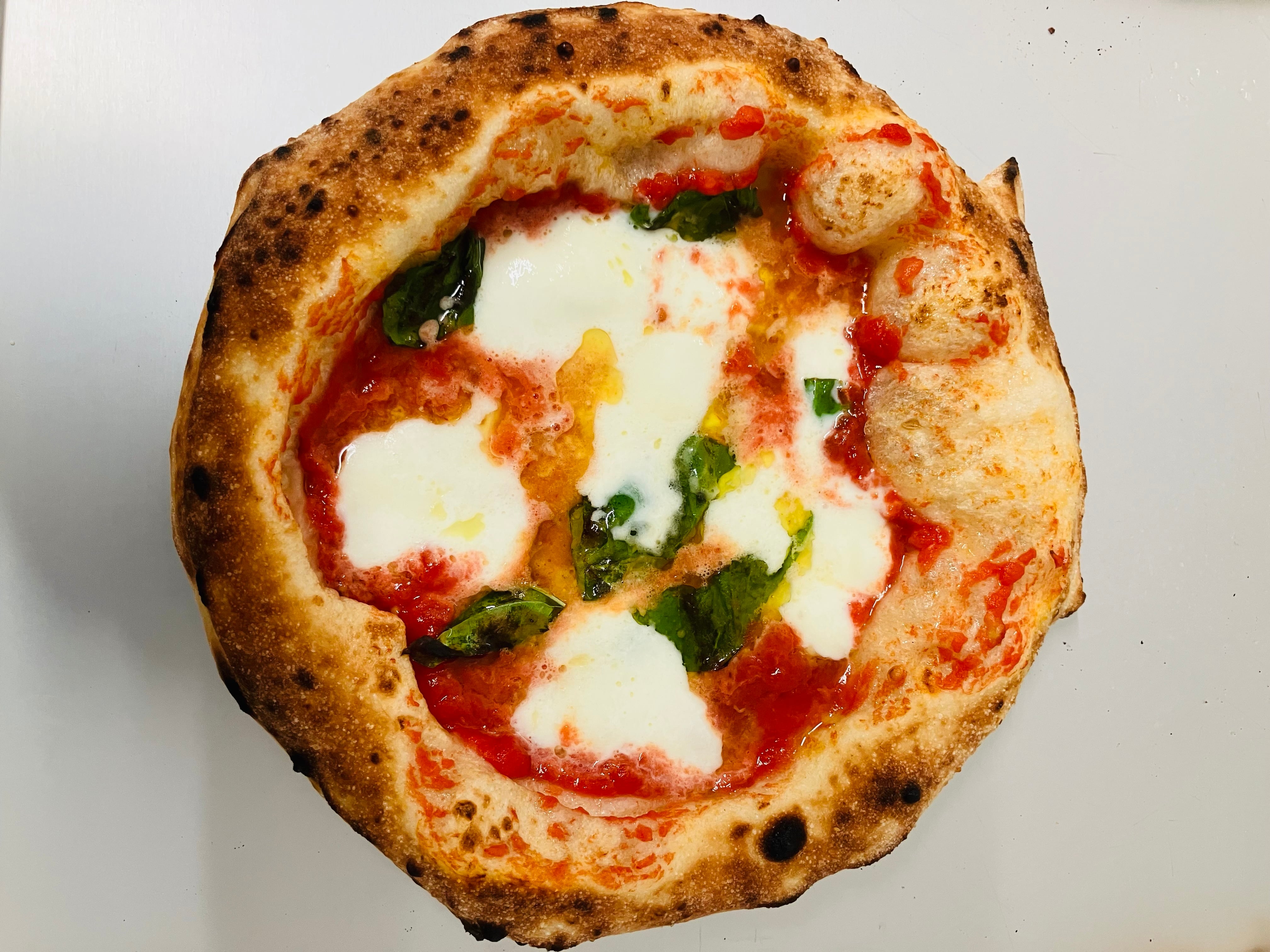 新鮮な水牛のモッツァレラチーズが、トマトの甘さとバジルの香りを贅沢に引き立てています。クリーミーなチーズとジューシーなトマトソース、そして香ばしく焼き上げた生地が絶妙に調和し、一口ごとに豊かな風味が広がります。素材の良さを活かしたこのマルゲリータは、特別なディナーや友人との集まりにぴったりの逸品です。